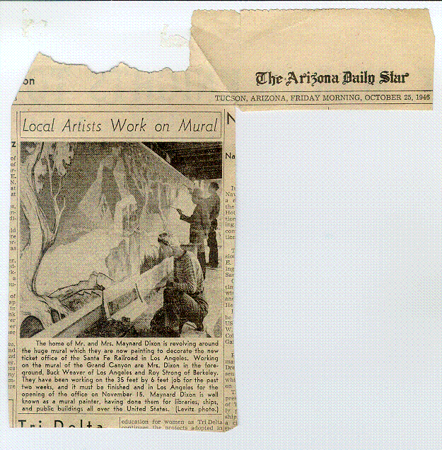 Source Unknown. Undated. "Maynard Dixon Mural Hung in Santa Fe Ticket Office".